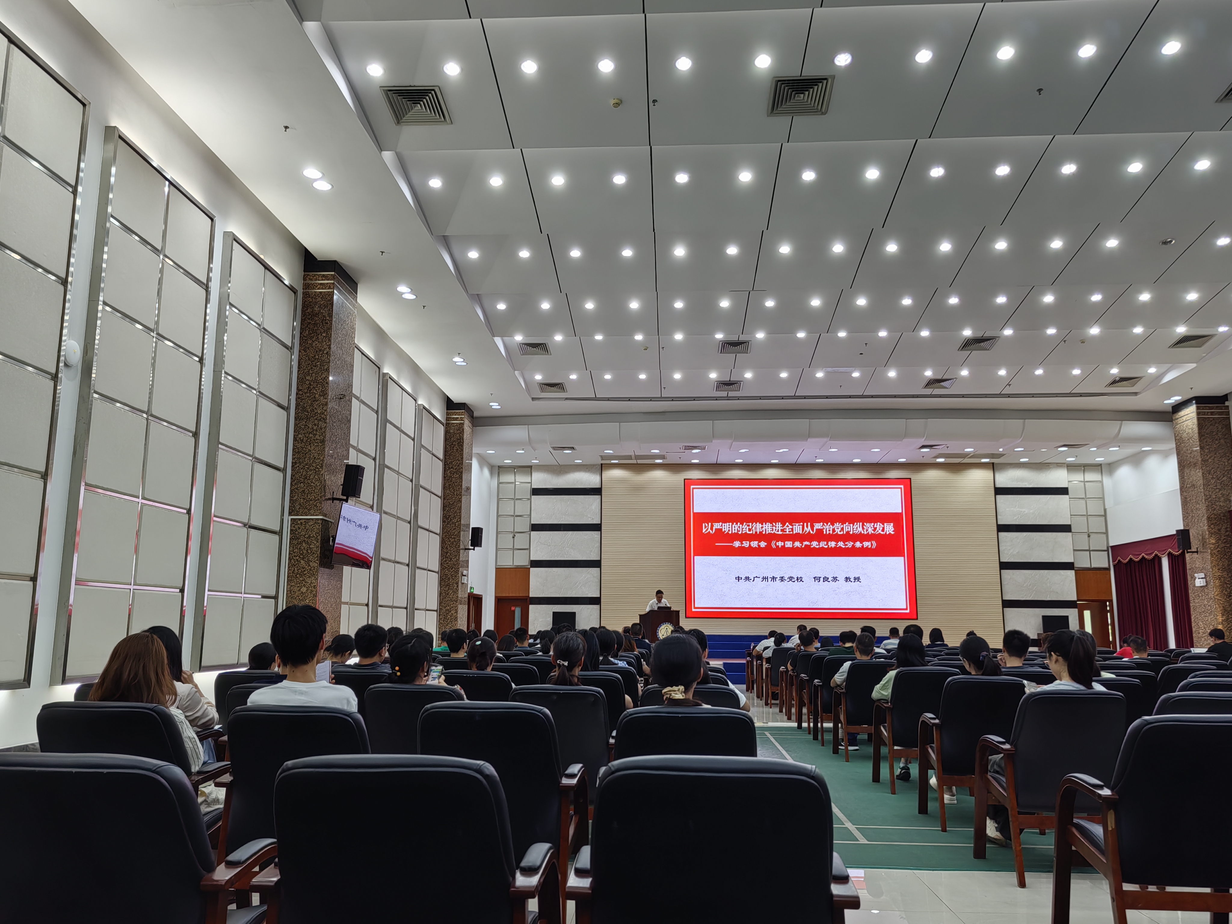 為了深入學習貫徹《中國共產(chǎn)黨紀律處分條例》,6月21日下午,廣州健康院邀請中共廣州市委黨校何良蘇教授作專題輔導報告,黨委副書記、紀委書記徐海主持報告會。