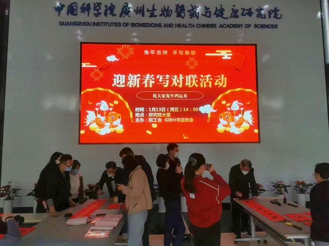 1月13日下午,兔年春節(jié)來(lái)臨之際,廣州健康院書法協(xié)會(huì)在A棟大堂舉辦了“妙筆揮毫寫春聯(lián),翰墨飄香迎新年”活動(dòng),黨委書記段子淵現(xiàn)場(chǎng)同師生員工一起寫春聯(lián),送祝福。