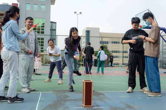 賽場上,參賽者就神龍吐珠、雙龍戲珠、青春風(fēng)火輪等12項(xiàng)比賽展開了激烈的角逐,爭相完成各項(xiàng)游戲任務(wù)。大家手腳并用,竭盡全力,場面歡樂而激動(dòng)人心。運(yùn)動(dòng)會(huì)為迎接龍年而設(shè)計(jì)的比賽“雙龍戲珠”吸引了眾多觀眾的目光。游戲設(shè)計(jì)新穎,隊(duì)員們緊握“龍身”,全力以赴地向目標(biāo)飛奔,充分展現(xiàn)團(tuán)結(jié)協(xié)作的力量。除競技項(xiàng)目外,活動(dòng)還設(shè)置了許多娛樂項(xiàng)目。投壺游戲、珠行萬里、合力建塔等讓大家盡情揮灑才藝和活力。