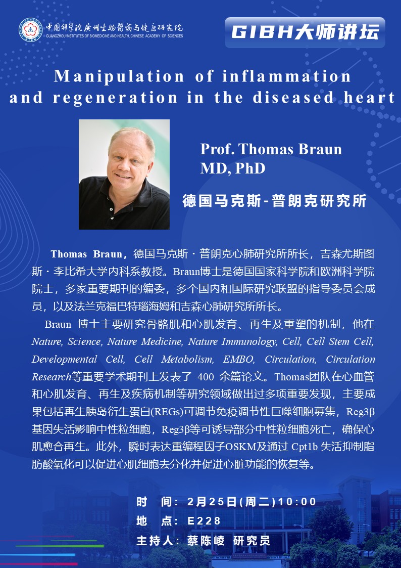 2025年2月25日大師講壇:Manipulation of inflammation and regeneration in the diseased heart