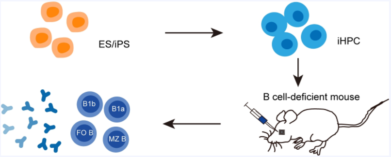 首次揭示了一套可以高效誘導(dǎo)干細(xì)胞分化產(chǎn)生B免疫譜系的轉(zhuǎn)錄因子組合,證明在不依賴造血干細(xì)胞存在的情況下可以通過再生手段移植重建功能完整的體液免疫系統(tǒng),實(shí)現(xiàn)抗原特異性體液免疫應(yīng)答,并產(chǎn)生長期免疫記憶。這為開發(fā)B細(xì)胞療法治療B細(xì)胞相關(guān)疾病提供了理論支持和及技術(shù)借鑒(2021,Cellular & Molecular Immunology)。