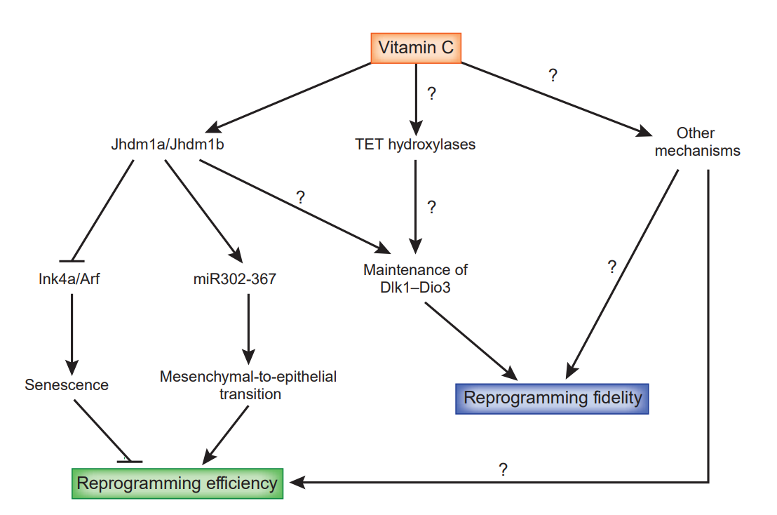 維生素C對體細胞重編程的作用與潛在機制。