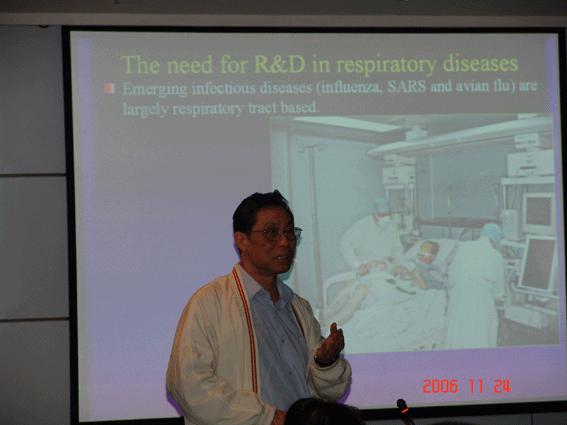 本次會議的主要目的為進一步發(fā)揮各自優(yōu)勢、增進相互了解,特別是對雙方的研究方向、感興趣和研究中存在的問題、雙方需求等方面進行研討,以及聯(lián)合實驗室人員對呼吸系統(tǒng)疾病有一個更全面的了解。會上鐘南山院士作了“呼吸疾病聯(lián)合實驗室的研究與發(fā)展趨勢”、陳凌院長作了“流感和禽流感疫苗與藥物研究”、裴端卿副院長作了“基于EGFR基因突變非小細胞肺癌新藥開發(fā)”的研究報告,雙方相關(guān)的科研人員也作了有關(guān)研究報告。