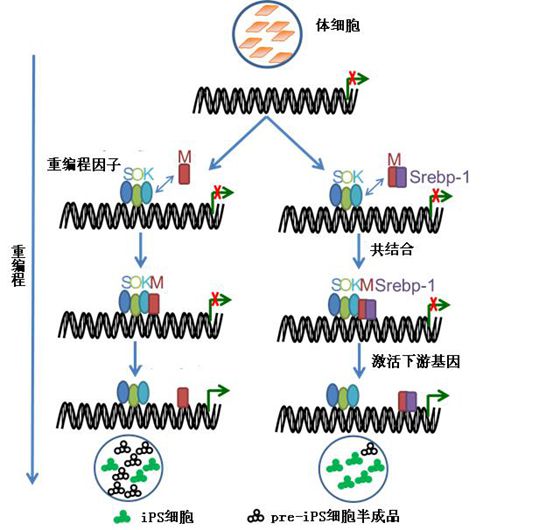 Srebp-1結(jié)合c-Myc促進(jìn)體細(xì)胞重編程模式圖