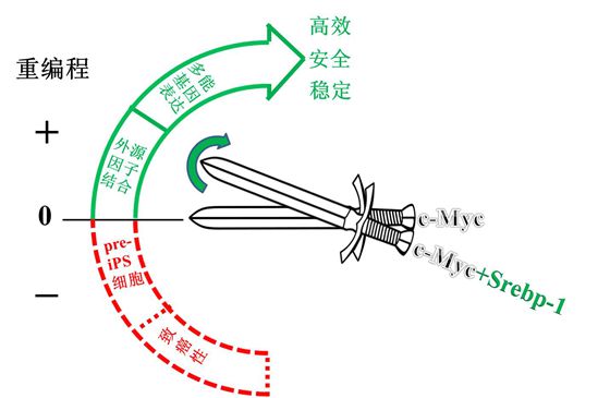 2006年,日本科學(xué)家Yamanaka成功利用四個(gè)轉(zhuǎn)錄因子Oct4、Sox2、Klf4和c-Myc將小鼠胚胎成纖維細(xì)胞誘導(dǎo)成了多能性干細(xì)胞(iPSC)。其中,原癌基因c-Myc是重編程體系中的雙刃劍。一方面,c-Myc能調(diào)控一系列生理過程包括細(xì)胞周期、細(xì)胞增殖、代謝轉(zhuǎn)換、信號(hào)轉(zhuǎn)導(dǎo)以及多能性基因的表達(dá)等從而極大促進(jìn)體細(xì)胞重編程。在重編程過程中,它還能招募組蛋白乙酰轉(zhuǎn)移酶以及促進(jìn)其它重編程因子對(duì)染色質(zhì)的結(jié)合。但是,另一方面,c-Myc同時(shí)也會(huì)導(dǎo)致許多不完全重編程細(xì)胞的形成(pre-iPS細(xì)胞半成品),而且有極大的致癌風(fēng)險(xiǎn)。這為iPS細(xì)胞的應(yīng)用帶來了極大的低效障礙和安全風(fēng)險(xiǎn)。