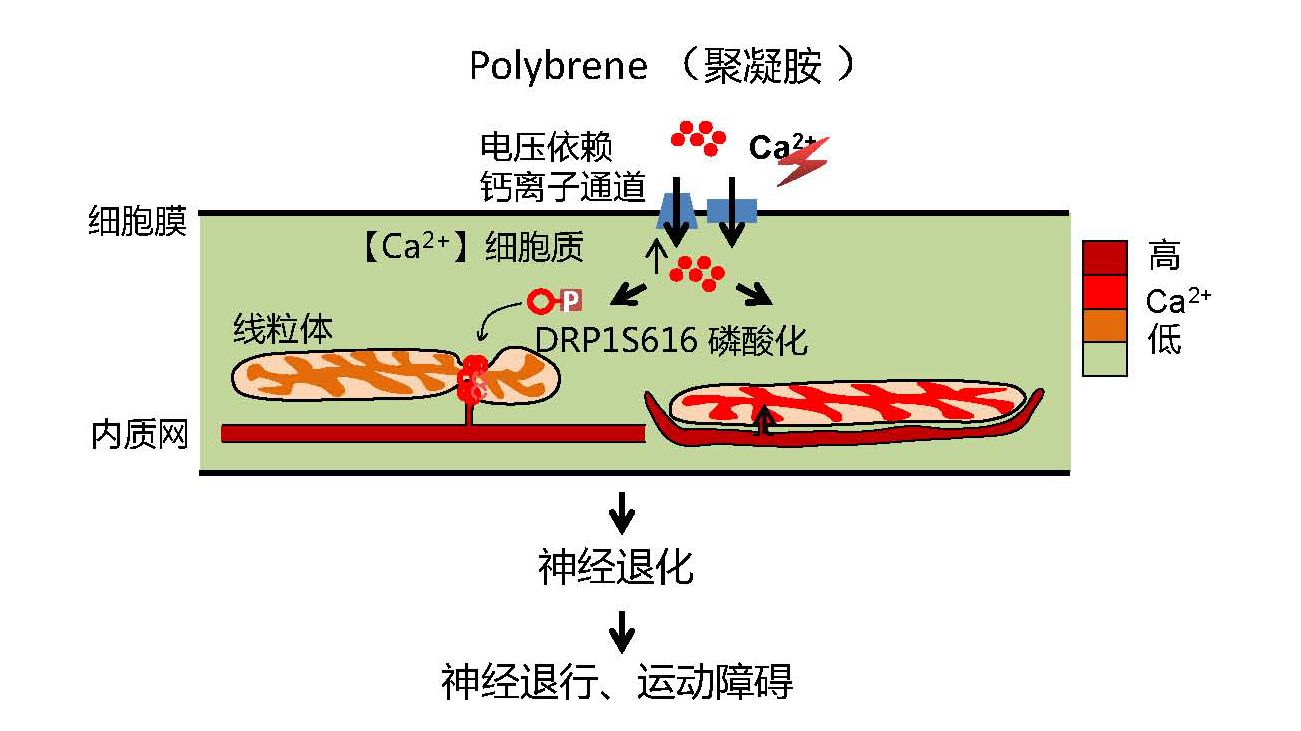 9月20日, Cell Death & Disease(Nature雜志社)發(fā)表了中科院廣州生物醫(yī)藥與健康研究院劉興國課題組研究成果“Polybrene induces neural degeneration by bidirectional Ca2+ influx-dependent mitochondrial and ER–mitochondrial dynamics(聚凝胺啟動鈣內(nèi)流介導(dǎo)的線粒體和內(nèi)質(zhì)網(wǎng)-線粒體動態(tài)改變引發(fā)神經(jīng)退化)”。該研究發(fā)現(xiàn),Polybrene作為廣泛使用的基因治療和感染的佐劑,在低劑量下引發(fā)神經(jīng)退化:小鼠的體內(nèi)實驗表現(xiàn)出運(yùn)動障礙伴隨腦內(nèi)神經(jīng)死亡和膠質(zhì)增生,而在人神經(jīng)元中誘發(fā)濃度依賴性軸突串珠化和碎片化。這一神經(jīng)毒性的機(jī)制是鈣離子內(nèi)流雙向調(diào)控細(xì)胞器重塑:線粒體斷裂,內(nèi)質(zhì)網(wǎng)片段化并和線粒體耦合,而啟動神經(jīng)退化。
