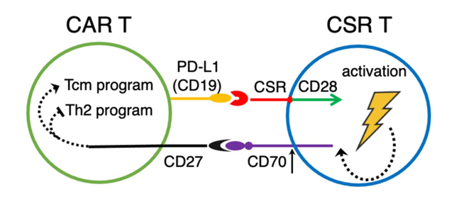 靶向CAR-T細胞表面抗原的CSR-T細胞經(jīng)CD70-CD27信號通路提升CAR-T細胞抗腫瘤活性概念圖