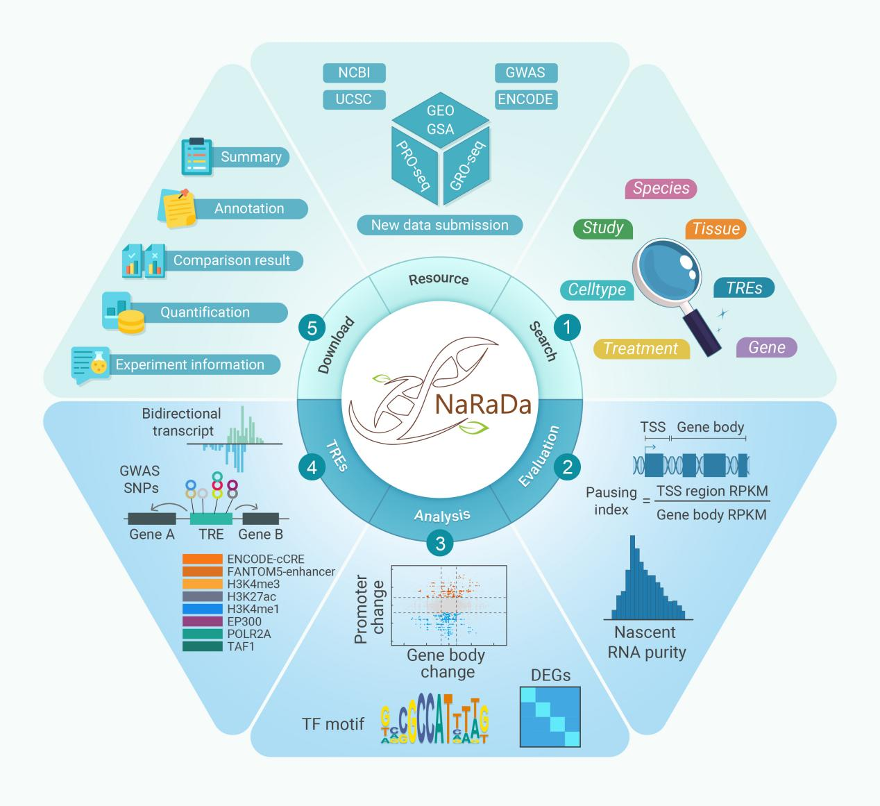 近日,中國科學(xué)院廣州生物醫(yī)藥與健康研究院鮑習(xí)琛團隊在The Innovation Life發(fā)表了題為“NaRaDa: A comprehensive nascent RNA database”的文章,構(gòu)建了綜合性的新生RNA數(shù)據(jù)庫NaRaDa(http://www.narada.bio)。
