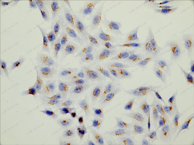 肝癌細(xì)胞爬片5B5染色,高爾基體著色