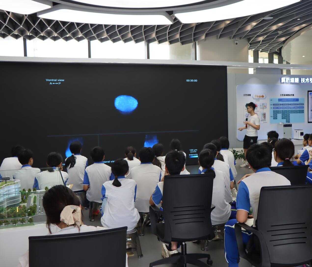 5月24日,由中國科學院廣州生物醫(yī)藥與健康研究院牽頭建設的國家“十四五”重大科技基礎設施——人類細胞譜系大科學研究設施(簡稱“細胞譜系設施”)在廣州國際生物島舉辦了設施開放日活動,活動以“生命數字化大國重器‘大揭秘’”為主題,為來自廣州科學城中學的40余位學生和老師詳細介紹了這一剛剛正式啟動建設的大科學設施?;顒蛹蠀⒂^、前沿科學儀器演示、科普講座和問答交流等多種形式。一方面具體且生動展現了細胞譜系設施建設內容、建設進展以及預期目標,一方面深入淺出地講解了生命科學的前沿和核心細胞譜系研究的基本知識以及其在推動疾病精準治療、縮短藥物研發(fā)周期等方面的重要作用,拉近了公眾與大科學設施的距離,充分激發(fā)了學生們對生命科學的興趣和探索欲望。