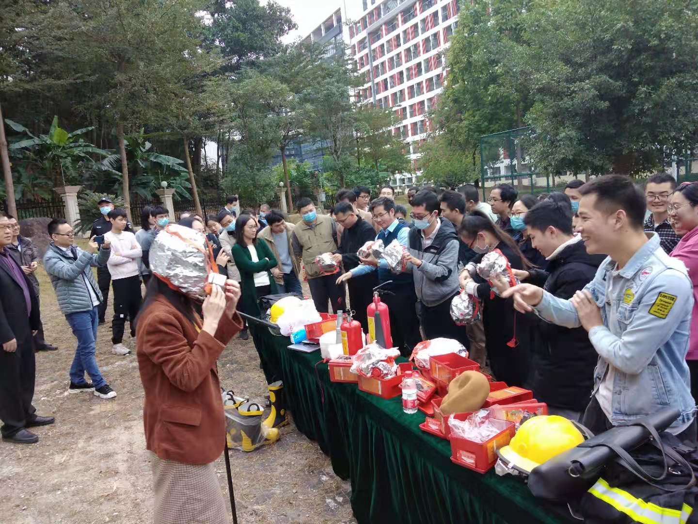 隨后,全院師生進(jìn)員工進(jìn)行消防逃生應(yīng)急疏散演練,并現(xiàn)場(chǎng)學(xué)習(xí)防毒面具的使用,隨后職工學(xué)生共一百多人參加滅火實(shí)戰(zhàn)演練。