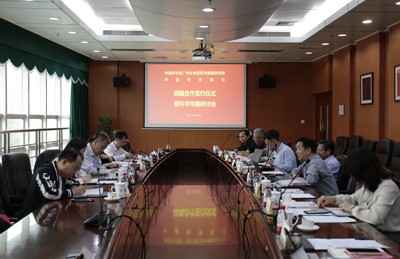 4月9日,中國科學(xué)院廣州生物醫(yī)藥與健康研究院(簡稱廣州健康院)與中國科學(xué)報(bào)社戰(zhàn)略合作協(xié)議簽約儀式暨科學(xué)傳播研討會在廣州健康院第一會議室舉行。廣州健康院院長陳新文、中國科學(xué)報(bào)社黨委書記劉峰松代表雙方簽訂協(xié)議。會議由廣州健康院黨委副書記、紀(jì)委書記侯紅明主持。