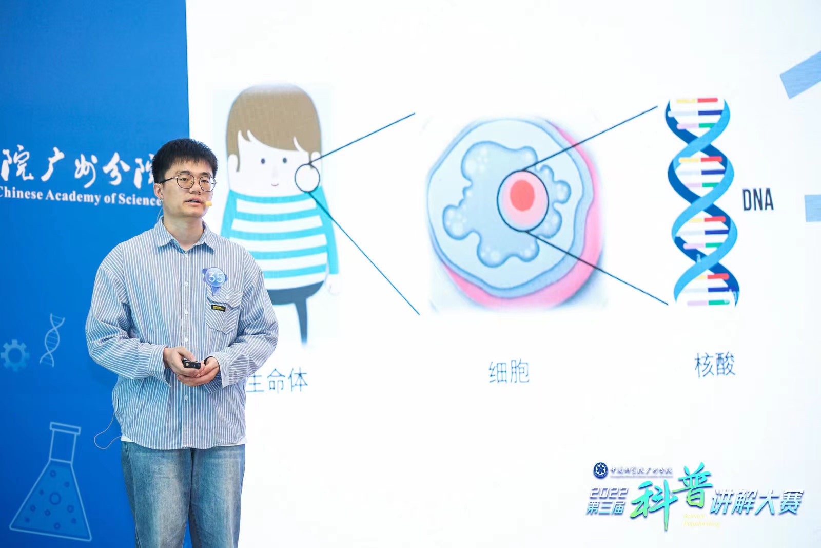 5月19日,在中國科學(xué)院第十八屆公眾科學(xué)日舉辦之際,“科普進校園灣區(qū)百校行”系列活動之一的中國科學(xué)院廣州分院2022第三屆科普講解大賽在廣州舉行。其間,“科普進校園灣區(qū)百校行暨華南師范大學(xué)‘華附聯(lián)盟’教育集團學(xué)??萍蓟顒訂觾x式”同期舉辦。來自中國科學(xué)院廣州分院系統(tǒng)單位的36名優(yōu)秀選手同臺競技,為現(xiàn)場觀眾帶來了一場精彩紛呈的科普盛宴。中科院廣州生物醫(yī)藥與健康研究院組織了5名選手參加2022年第三屆科普講解大賽。經(jīng)過一天的角逐,彭浩獲一等獎,孫珍珠、吳燕鏵獲二等獎,王弛、林丹妮獲三等獎。
