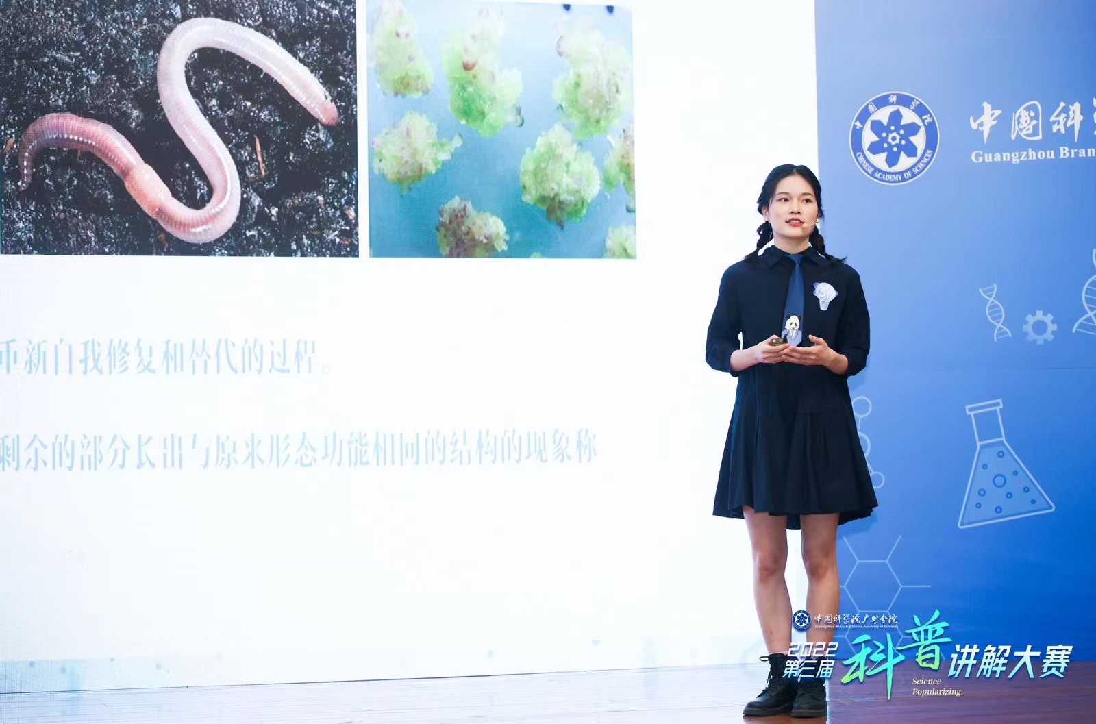 廣州健康院的5位選手圍繞健康院學(xué)科方向分別作了“干細胞,看我七十二變”、“新冠病毒‘皇冠’下的秘密”、“一種復(fù)活滅絕生物的神秘力量”、“從長生不老到再生醫(yī)學(xué)”、“一個不屬于我的細胞”的科普講解,將一線最新科研成果變成生動有趣的語言,深入淺出、講解通俗易懂。短短4分鐘的講解,讓一個個科學(xué)知識變得淺顯易懂,得到了評委和觀眾的一致好評。