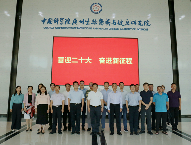 10月14日,廣州醫(yī)科大學(xué)黨委書記唐小平、校長趙醒村一行到中國科學(xué)院廣州生物醫(yī)藥與健康研究院進行訪問交流。廣州健康院黨委書記(法定代表人)、副院長段子淵等接待了來賓一行。黨委副書記、紀(jì)委書記侯紅明主持了雙方合作交流座談會。