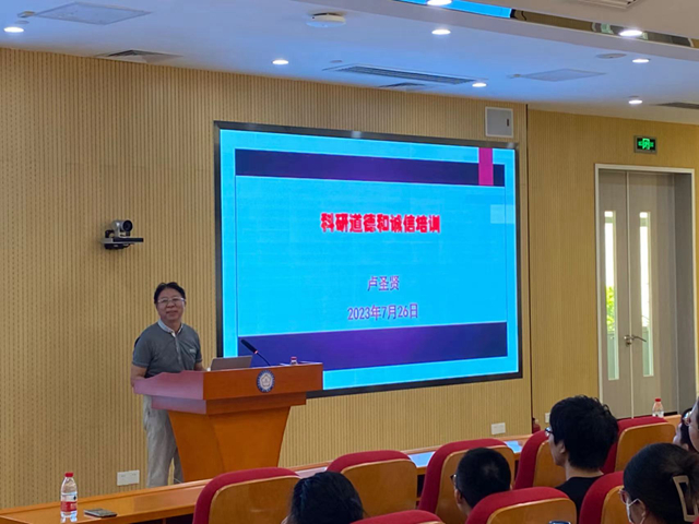 7月26日,中國科學(xué)院廣州健康院科研道德與誠信建設(shè)工作辦公室邀請研究院原科研誠信專員盧圣賢作專題講座報(bào)告,報(bào)告會由黨委副書記、紀(jì)委書記侯紅明主持。