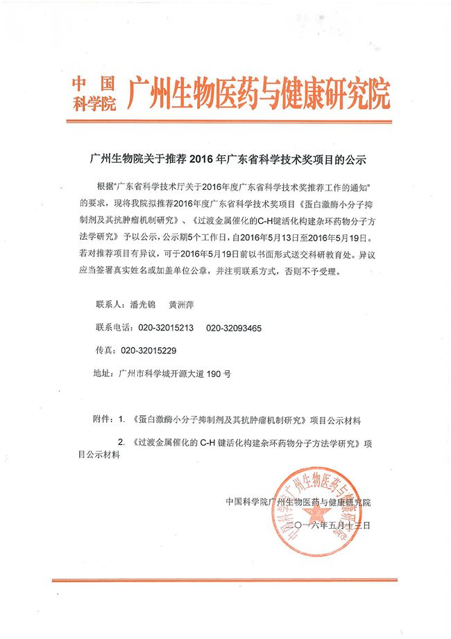 2.《過渡金屬催化的C-H鍵活化構(gòu)建雜環(huán)藥物分子方法學(xué)研究》項(xiàng)目公示材料?
