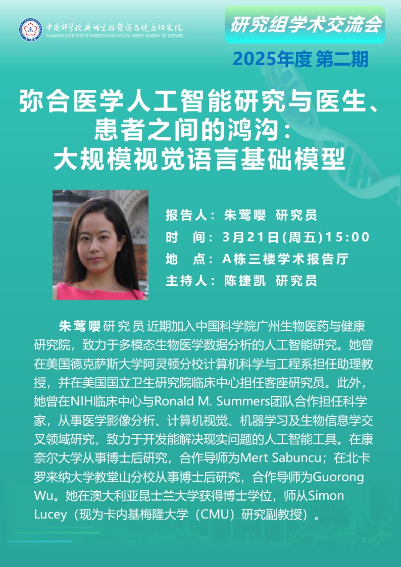 2025年3月21日研究組學術(shù)交流會(2025年度第二期):彌合醫(yī)學人工智能研究與醫(yī)生、患者之間的鴻溝——大規(guī)模視覺語言基礎(chǔ)模型
