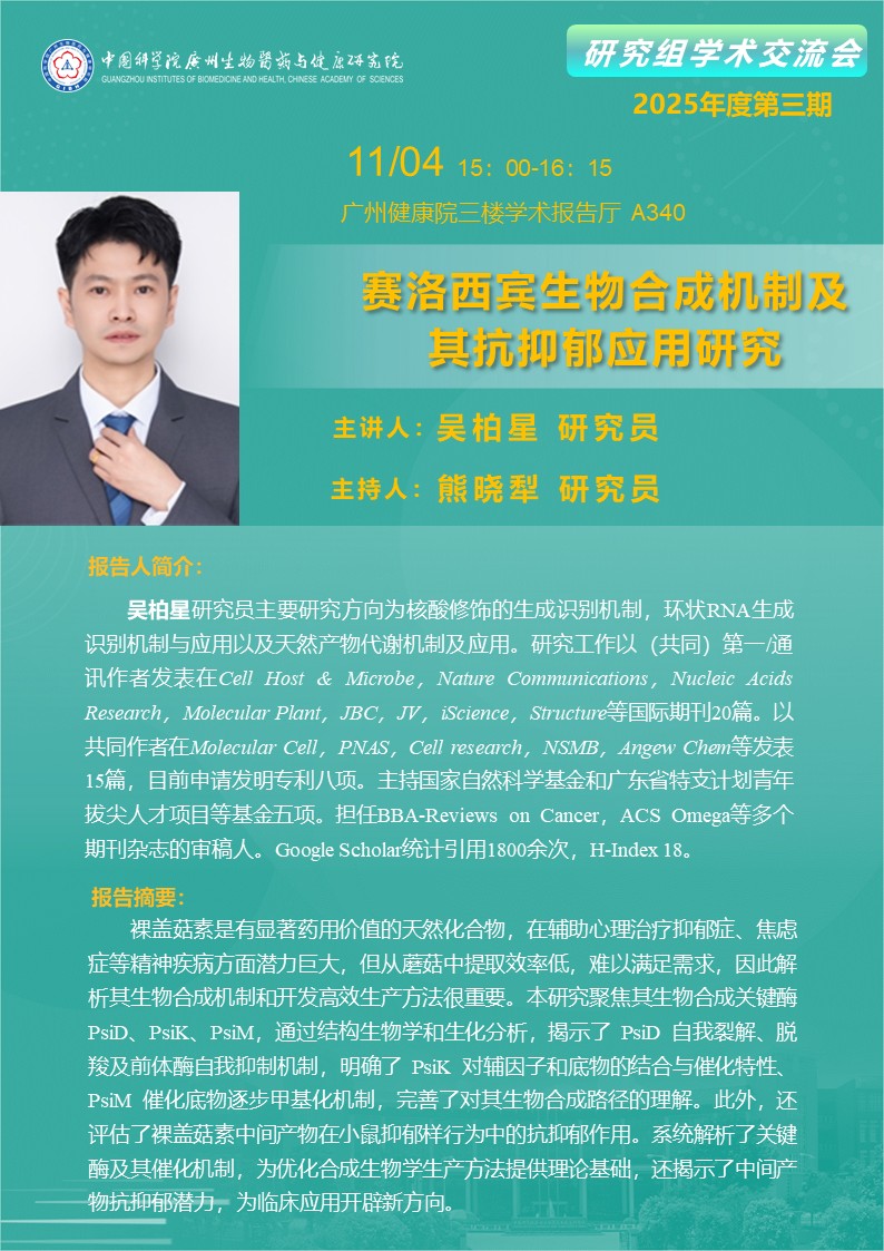 2025年4月11日研究組學術(shù)交流會(2025年度第三期):賽洛西賓生物合成機制及其抗抑郁應(yīng)用研究
