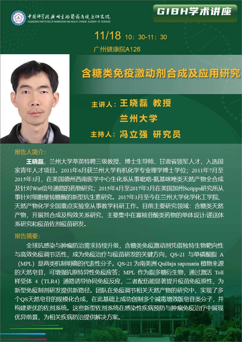2025年11月18日學(xué)術(shù)講座:含糖類(lèi)免疫激動(dòng)劑合成及應(yīng)用研究