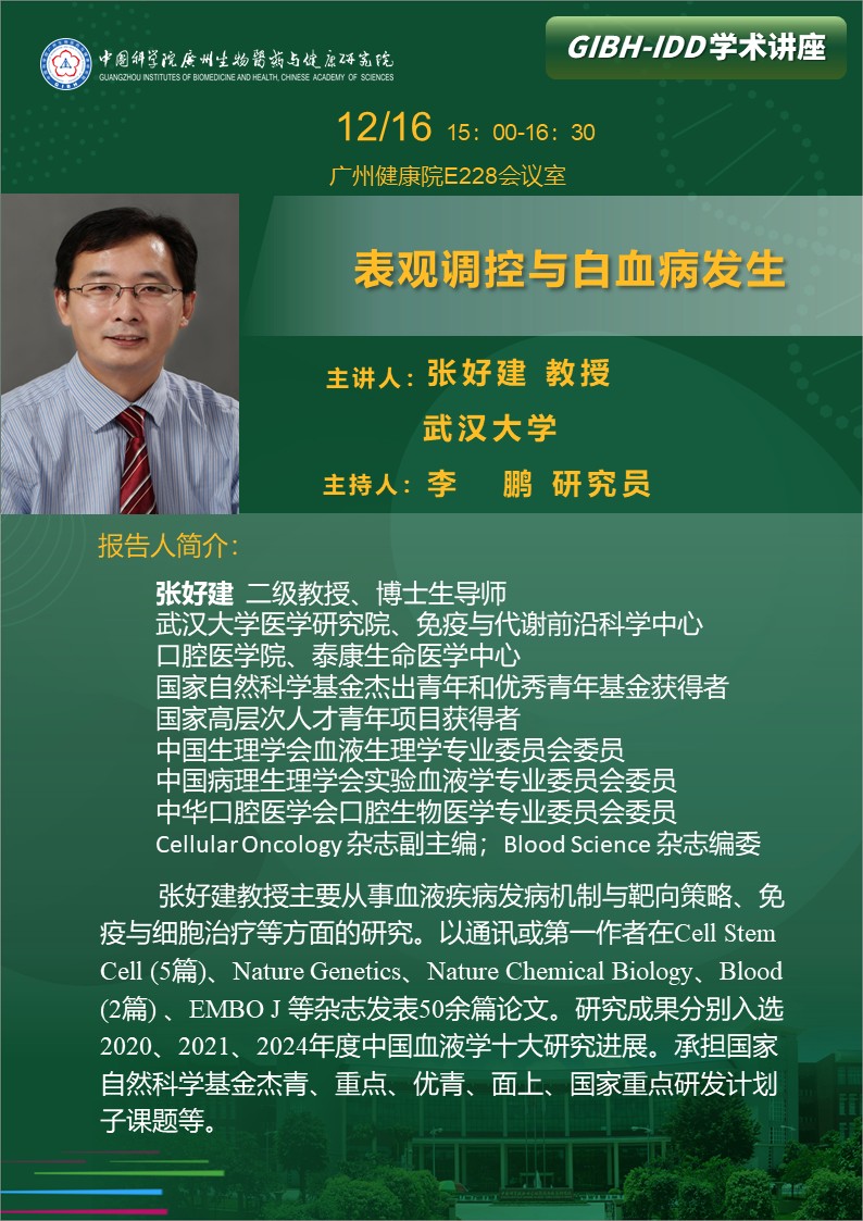2025年12月16日學術講座:表觀調控與白血病發(fā)生