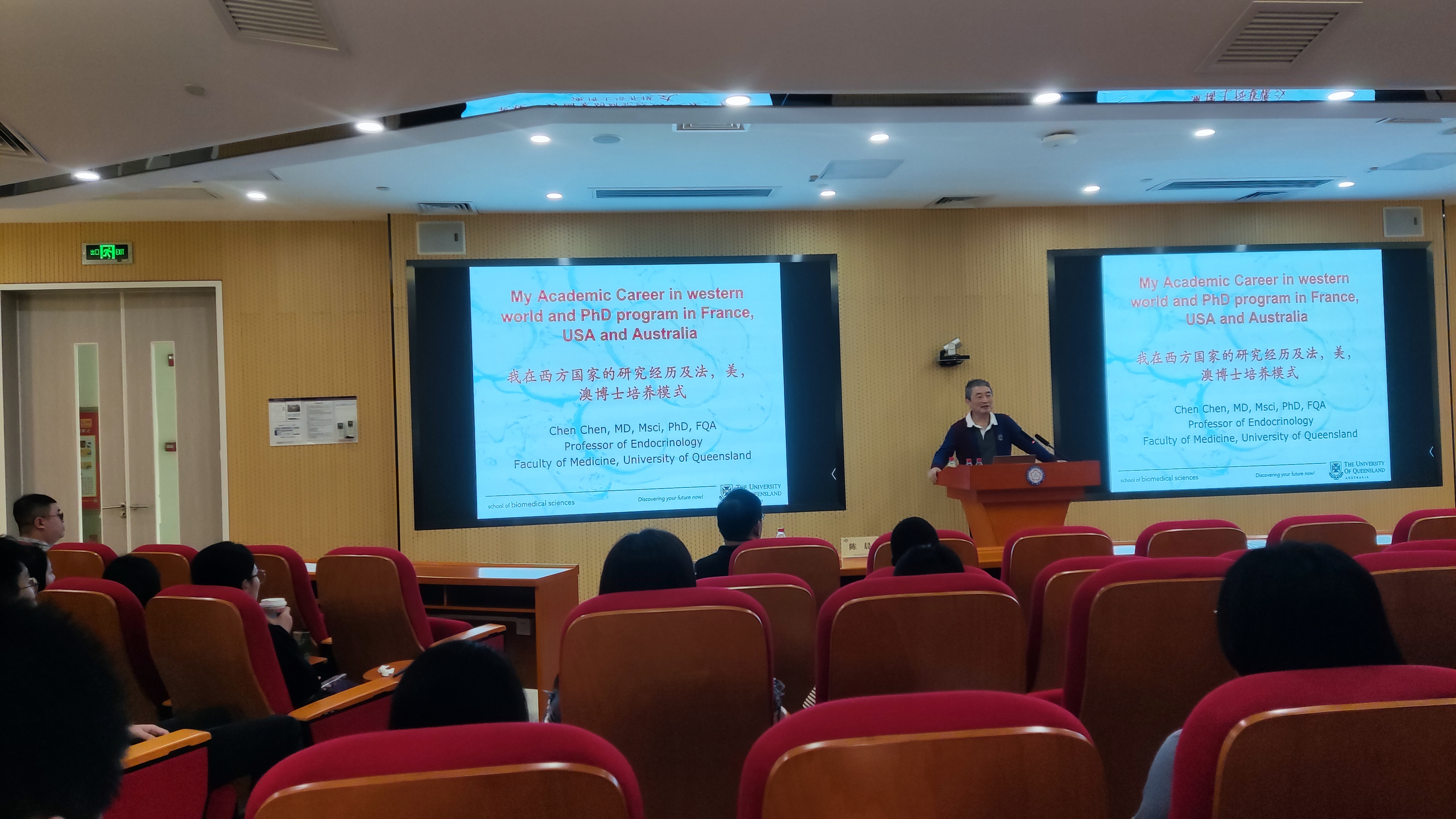 11月4日,澳大利亞昆士蘭大學(xué)陳晨教授應(yīng)邀為廣州健康院研究生作題為“我在西方國(guó)家的研究經(jīng)歷及法美澳博士培養(yǎng)模式”的專(zhuān)題講座,在院研究生參加講座。