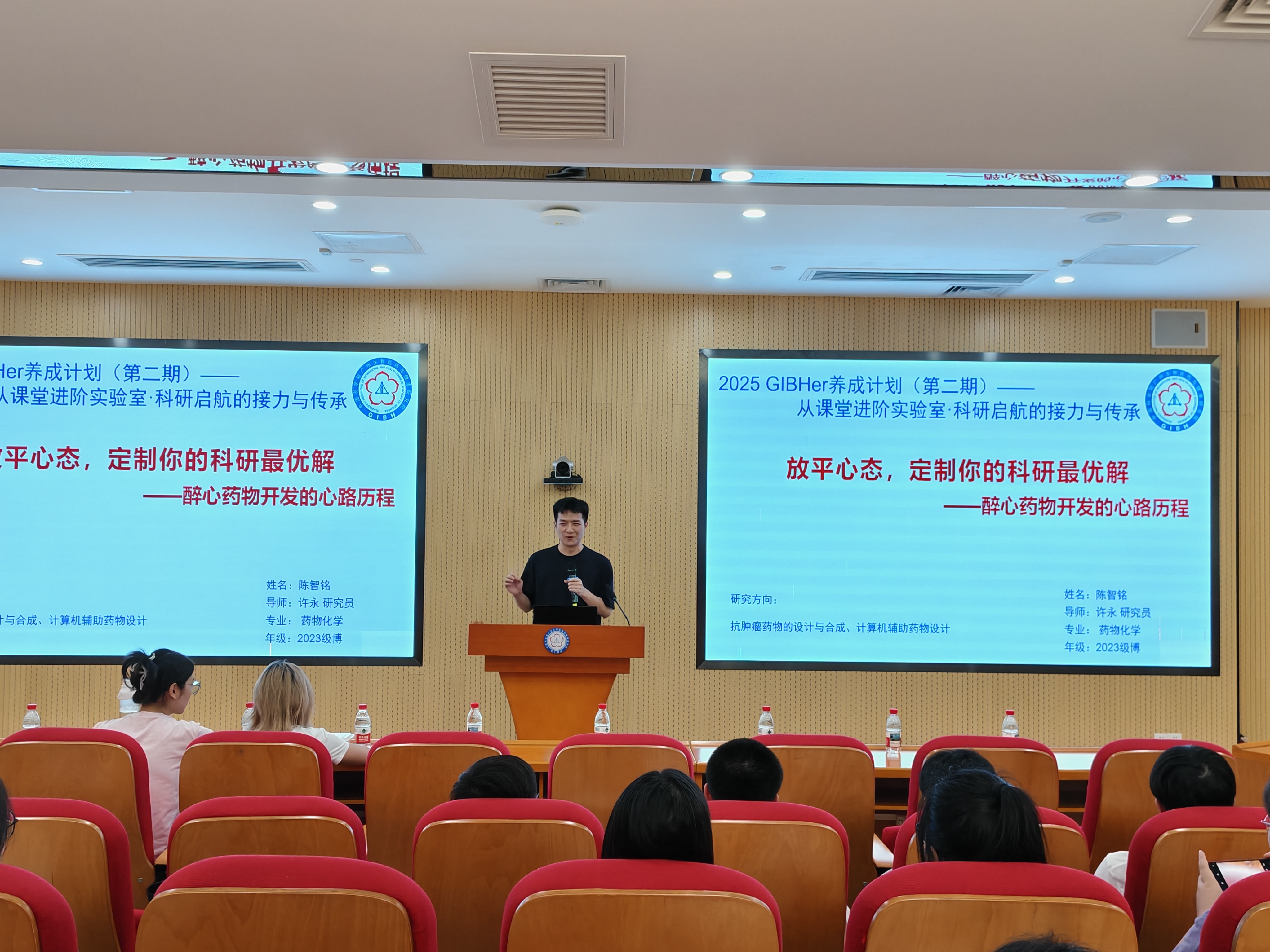 本期活動邀請2023級藥物化學(xué)專業(yè)博士生陳智銘和2024級發(fā)育生物學(xué)專業(yè)博士生穆雙雙兩位優(yōu)秀朋輩代表,為剛結(jié)束集中教學(xué)、即將進(jìn)入實(shí)驗(yàn)室的2024級碩士生分享科研、學(xué)習(xí)經(jīng)驗(yàn)。他們以親身經(jīng)歷為引,與大家共話成長秘籍。