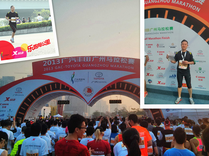 由中國(guó)田徑協(xié)會(huì)、廣州市人民政府主辦的2013廣汽豐田廣州馬拉松賽于11月23日在廣州花城廣場(chǎng)正式開(kāi)跑。中科院廣州生物醫(yī)藥與健康研究院劉勁松研究員完成了他首個(gè)半程馬拉松并創(chuàng)造了個(gè)人最好成績(jī),完賽時(shí)間2小時(shí)2分52秒,在完賽的2299名男子半程馬拉松選手中排名617。