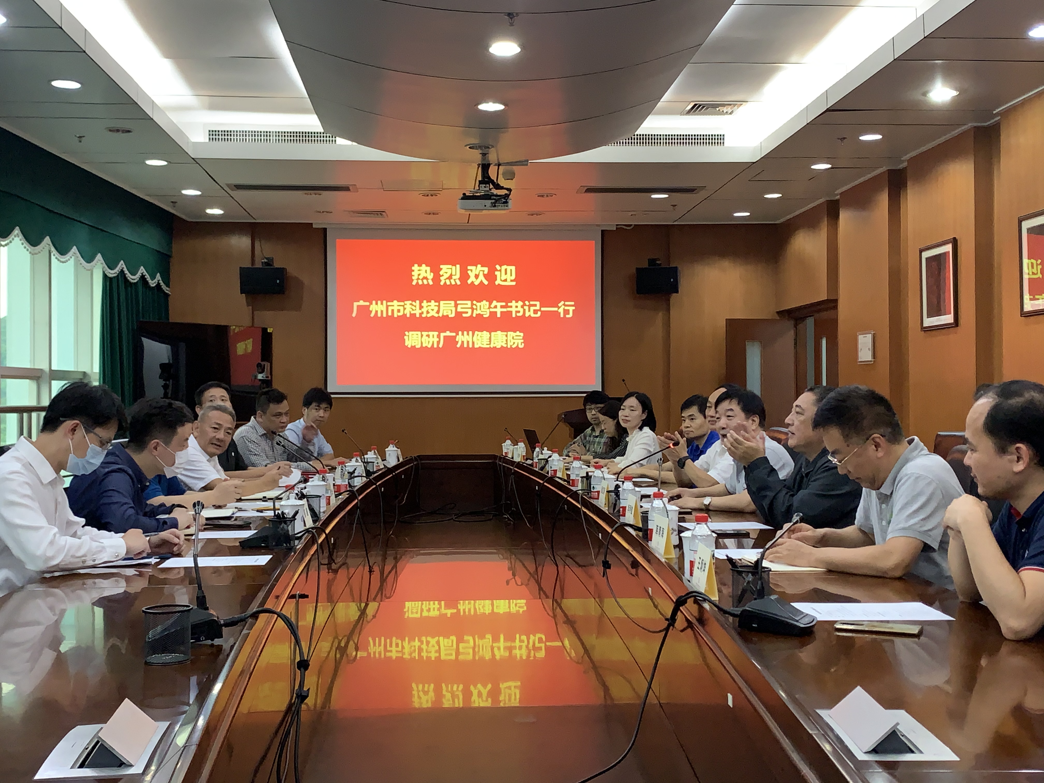 5月12日,廣州市科學(xué)技術(shù)局黨組書記弓鴻午一行到中科院廣州生物醫(yī)藥與健康研究院調(diào)研。廣州健康院全體班子成員接待了來賓一行。