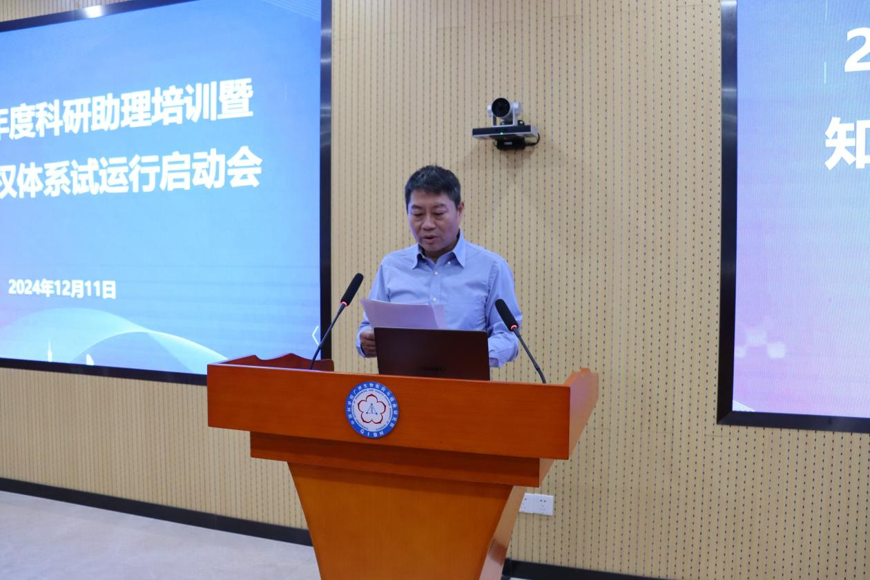 為強(qiáng)化科研助理隊(duì)伍建設(shè),提升科研助理履職能力,同時(shí)加強(qiáng)知識(shí)產(chǎn)權(quán)的規(guī)范化管理,廣州健康院于12月11日舉辦了“2024年度科研助理培訓(xùn)暨知識(shí)產(chǎn)權(quán)體系試運(yùn)行啟動(dòng)會(huì)議”。來(lái)自各二級(jí)科研單元、研究組、支撐中心的60余名科研助理以及管理部門人員參加了此次培訓(xùn)。