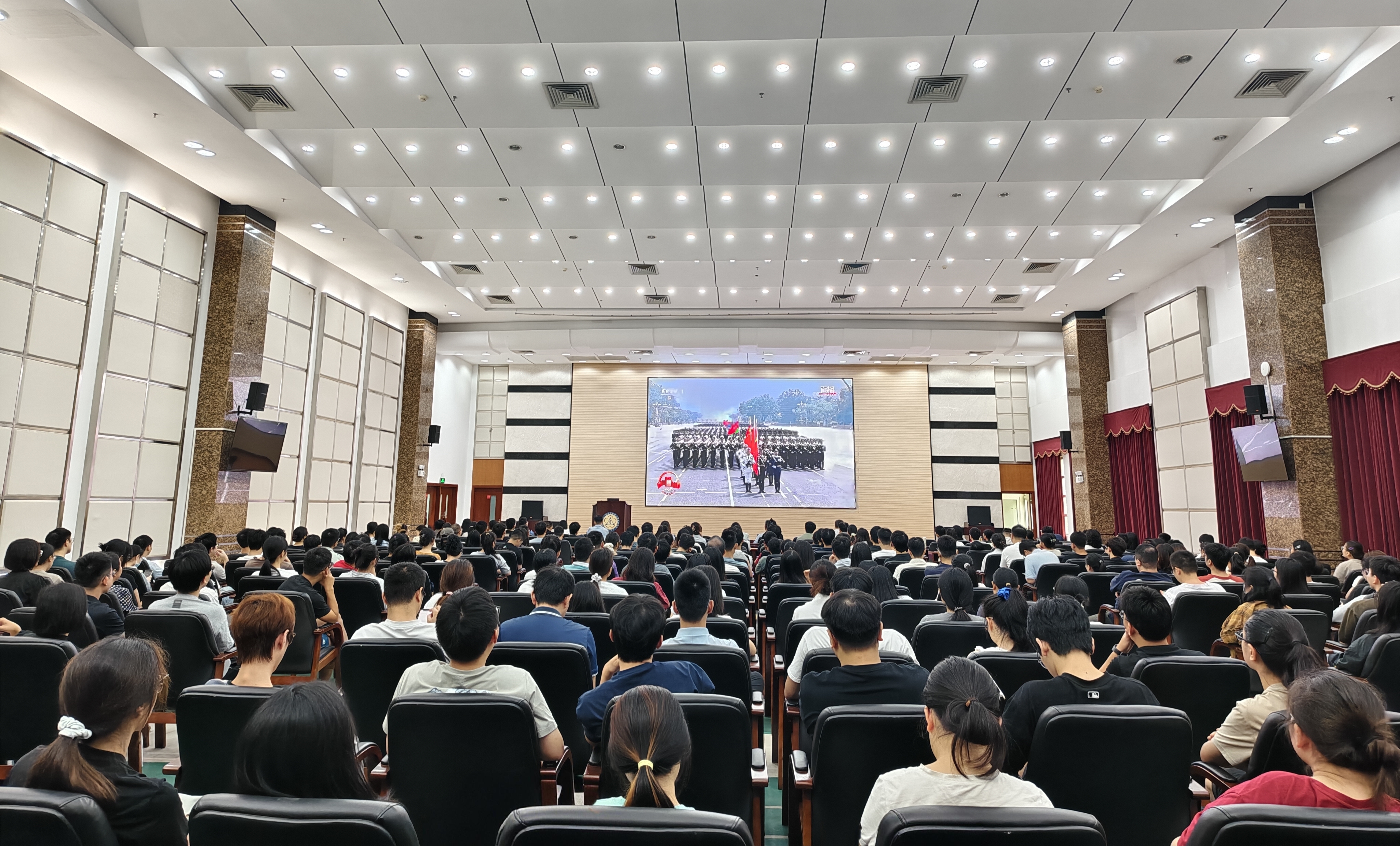 2025年9月3日,中國人民抗日戰(zhàn)爭暨世界反法西斯戰(zhàn)爭勝利80周年紀(jì)念大會(huì)在北京隆重舉行。廣州健康院組織全體在院學(xué)生及部分教職工代表集中觀看直播,黨委書記、副院長張鴻翔,黨委副書記、紀(jì)委書記徐海與五百余名師生一同參加活動(dòng)。