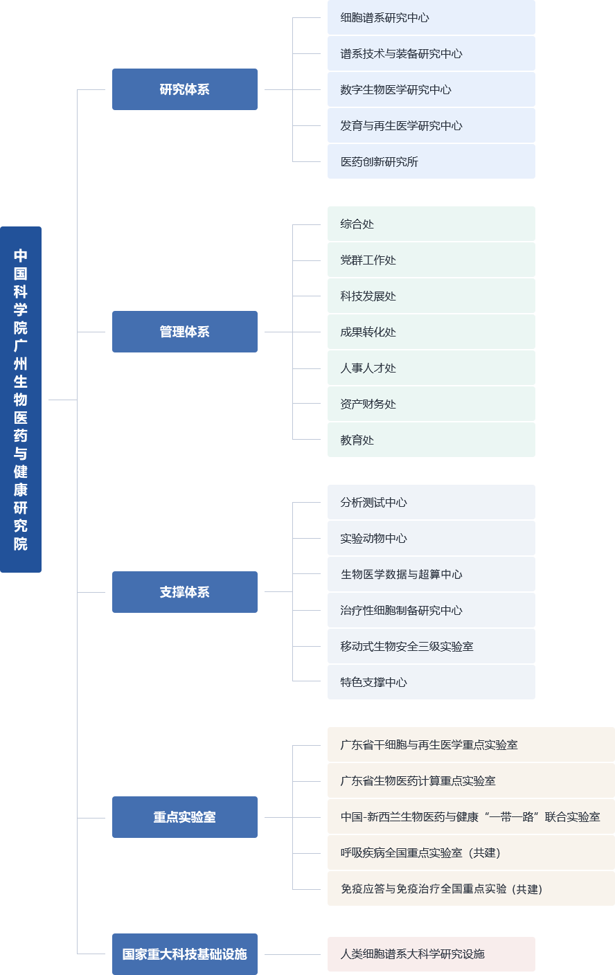 中國科學院廣州生物醫(yī)藥與健康研究院(簡稱“廣州健康院”)于2003年7月由中國科學院、廣東省人民政府、廣州市人民政府三方簽約共建,于2006年3月獲得中編辦批復正式成立。 廣州健康院的定位是:面向人民健康,聚焦生命健康領(lǐng)域前沿重大科學問題和重要疾病機理,以建成國際一流的生物醫(yī)藥與健康領(lǐng)域新型研發(fā)機構(gòu)和創(chuàng)新人才培養(yǎng)高地為目標,提供保障人類健康和疾病防控的原創(chuàng)性基礎理論、突破性前沿技術(shù)與系統(tǒng)性解決方案為使命,優(yōu)化科技成果快速轉(zhuǎn)化的機制與途徑,滿足國家戰(zhàn)略需求和區(qū)域經(jīng)濟社會發(fā)展,促進生物醫(yī)藥產(chǎn)業(yè)發(fā)展,發(fā)揮國家戰(zhàn)略科技力量的核心作用。