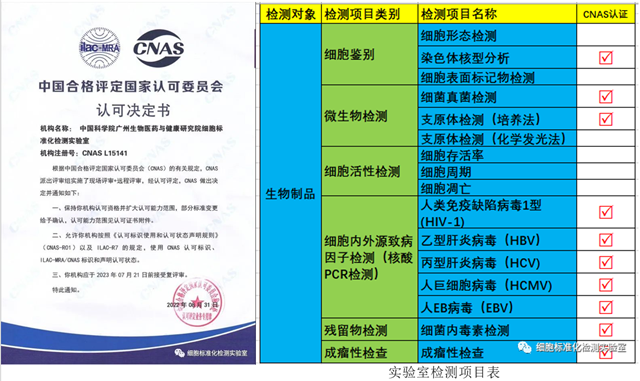 廣州健康院細(xì)胞標(biāo)準(zhǔn)化檢測實(shí)驗(yàn)室的支原體檢查和成瘤性檢查項目