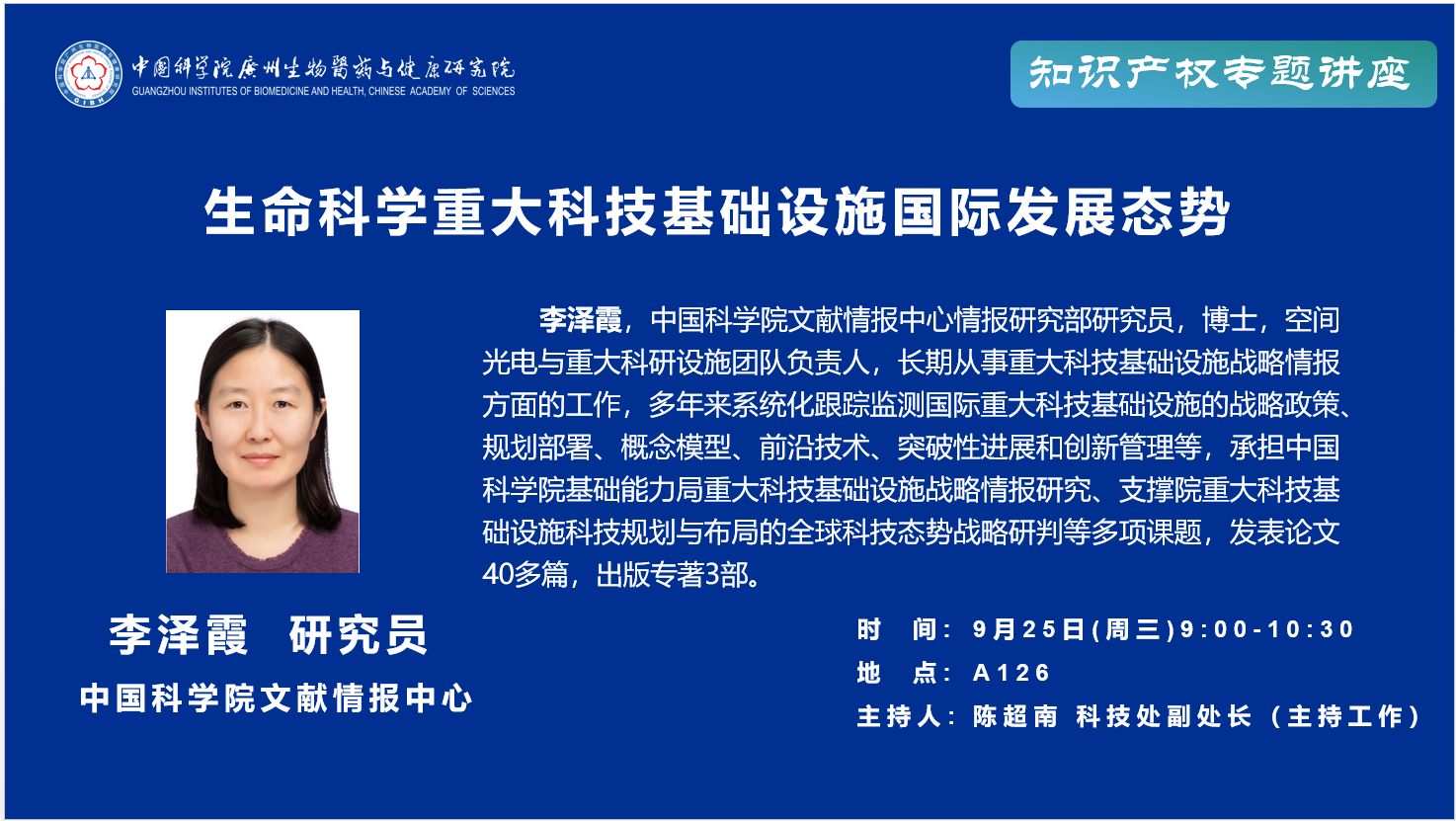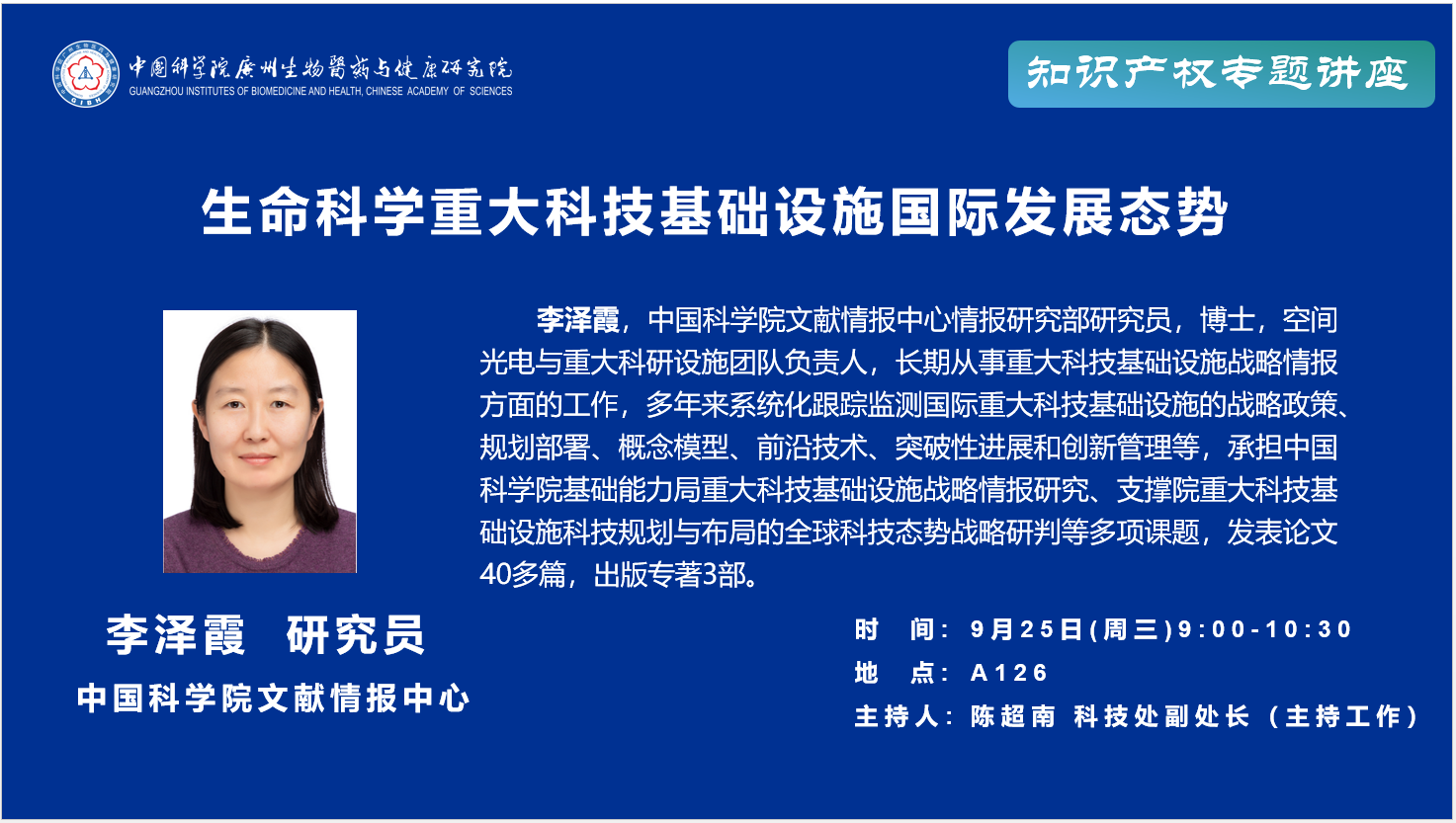 2024年9月25日知識產(chǎn)權(quán)專題講座:生命科學(xué)重大科技基礎(chǔ)設(shè)施國際發(fā)展態(tài)勢;重大科技基礎(chǔ)設(shè)施知識產(chǎn)權(quán)相關(guān)問題探討