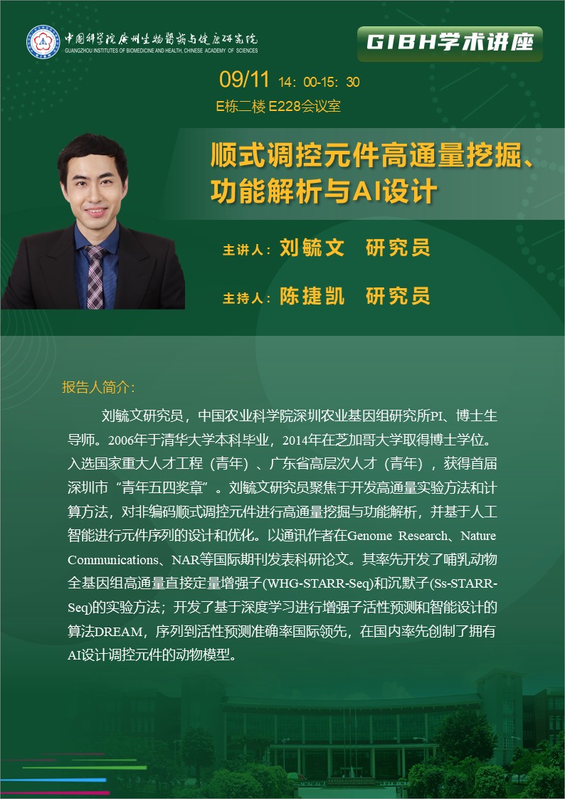 2025年9月11日學(xué)術(shù)講座: 順式調(diào)控元件高通量挖掘、功能解析與AI設(shè)計(jì)