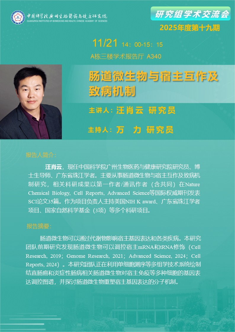 2025年11月21日研究組學(xué)術(shù)交流會(2025年度第十九期):腸道微生物與宿主互作及致病機制